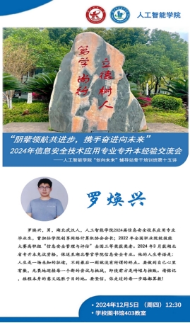 本网讯(通讯员 刘洵 刘雪琴 文/图)在1xbet平台人工智能学院“朋辈领航共进步,携手奋进向未来”2024年信息安全技术应用专业专升本经验交流会上,2024届信息安全技术应用专业毕业生罗焕兴身穿制服重返母校。短短2年的时间,他从彷徨迷茫到自立自强,实现了从一名观众变为主讲嘉宾的蜕变。