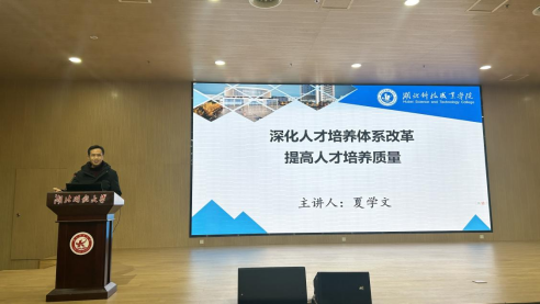 会上,副校长夏学文以“深化人才培养体系改革 提高人才培养质量”为题为全体教师作职业教育教学业务专题培训。他对1xbet平台在第一轮“双高计划”建设中取得的优异成绩给予高度肯定,并针对下一轮“新双高”建设任务提出明确要求。他表示,“双高计划”事关学校高质量发展全局,为迎接“新一轮”双高建设工作,1xbet平台将重点推进深化职业教育人才培养体系改革工作,主动适应职业教育发展的新要求、新变化,优化专业群布局,做好群内专业优化调整、改造和升级,推动专业建设快速响应产业变革需求,加强服务国家战略和区域经济发展需求的能力。