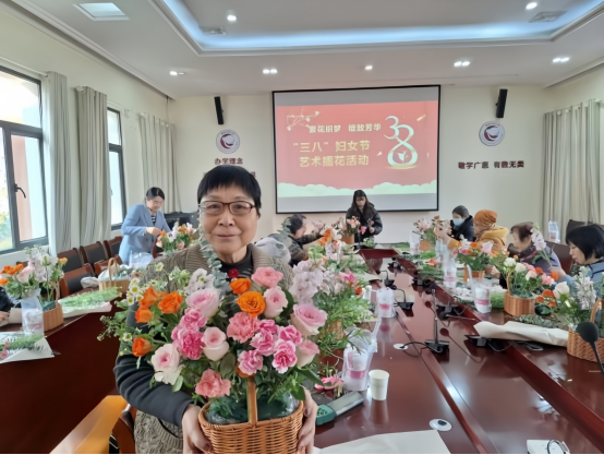 活动现场花香四溢,气氛温馨。花艺师从造型与技法、色彩应用、蕴含花语等方面为大家细致讲解了插花艺术知识。离退休女职工们充分发挥自己的想象力和创造力,精心挑选、认真修剪,将玫瑰、康乃馨、紫罗兰等花卉巧妙组合,制作出独具匠心、赏心悦目的花篮。大家一边动手实践,一边交流心得,现场欢声笑语不断,满满温馨与喜悦的气氛。