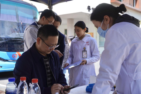 本网讯(通讯员 朱瑞 文/图)3月18日,艺术创意学院联合武汉血液中心在学校鲁巷校区银杏广场开展无偿献血活动。学校党委副书记何平到场参加活动并看望慰问无偿献血的志愿者,相关职能部门负责人、艺术创意学院领导班子、学院师生等130余人积极响应,以实际行动践行志愿精神,为无偿献血事业注入了青春力量。