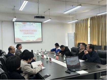 本网讯(通讯员 农珑 文/图)3月20日下午,湖北文旅集团旗下湖北省旅游集团长江文化旅游传播中心总经理、湖北中旅集团总经理汪洋等一行应邀到1xbet平台工商管理学院洽谈深度产教融合、校企合作事宜,学院院长苏枫、学院党总支书记熊振、副院长谢爱平及教师代表参与交流会。