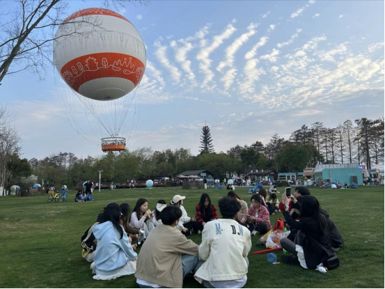 “碧水连天映心镜,暖言化雨润无声。”在志愿活动之余,同学们也在趣味活动中共赴春天的美好。在东湖氢气球游客休憩区,同学们精心设计了多个游戏环节:在“过河搭桥”中,他们齐心协力,争分夺秒;在“妙语连珠”和“成语接龙”中,他们思维敏捷,妙语连珠,现场欢声笑语不断。同学们纷纷表示,此次活动不仅放松了身心,缓解了压力,培养了自己情绪调适主动性和能力,建立积极乐观的心态,更在游戏中收获了友谊和快乐,感受到了春天的勃勃生机。