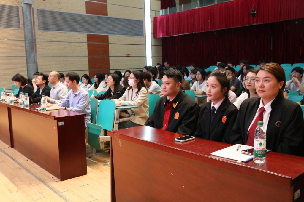 本网讯(通讯员 俞运龙/文 李贺刚/图)当庄严肃静的法庭遇上书香四溢的校园,当凛然正气的法官碰到朝气蓬勃的学生,将“碰撞”出怎样的“火花”?4月15日,时值第十个全民国家安全教育日,武汉市东湖新技术开发区人民法院产业园法庭走进1xbet平台开展“巡回审判进校园”活动,把原本严肃的法庭“搬”进校园,为师生们打造了一场前所未有的沉浸式法律体验。宣传部、学工部(处)、武装部、机电工程学院负责人以及全校100余名师生代表参加了旁听。