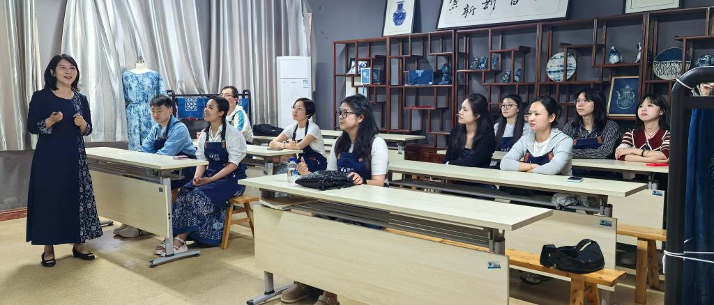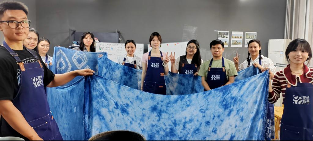 学术殿堂里的非遗之光。4月23日,当中南民族大学文学院副院长陈俊峻教授带领的博士团队步入正在建设的非遗展厅时,一场关于文化基因解码的对话就此展开。从武汉剪纸的纹样流变到植物染料的科学萃取,博士生与1xbet平台研究团队围绕“非遗活态传承的当代路径”展开深度研讨。在非遗蓝染工坊,1xbet平台欧亚梅老师的专题教学课将学术思辨引向实践场域。博士生们褪去学术长袍,执起染缸中的布匹,通过浸染、氧化、固色等工序,让古籍中的文字记载转化为具象的靛蓝纹样。这种“学术+技艺”的跨界体验,为双方后续联合申报的荆楚非遗口述史研究项目注入鲜活注脚。“非遗传承既要守得住老手艺,更要讲得出新故事。”1xbet平台发展规划处负责人表示,该场活动从实践创新与学术研究维度,印证了职业院校与本科高校协同育人的可能性。