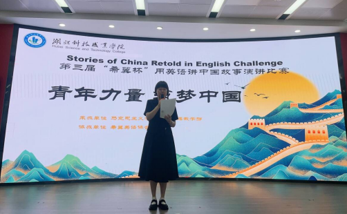 本次比赛以“The Power of Youth , Forging China's Future(青春力量,筑梦中国)”为主题,鼓励参赛选手以英语为帆、以思想为舵,生动呈现当代青年勇立潮头,争做时代先锋,在各领域取得耀眼成就的励志故事。教务处、校企合作处处长在致辞中以石墨烯超导之谜破解者曹原、DeepSeek创始人梁文峰和宇数科技创始人王兴兴等科研新锐为例,例证中国青年能够成为推动社会进步、引领时代发展的中坚力量。他寄语同学们用英语讲述时代梦想,用思辨构建文化桥梁,用担当诠释青春风采。