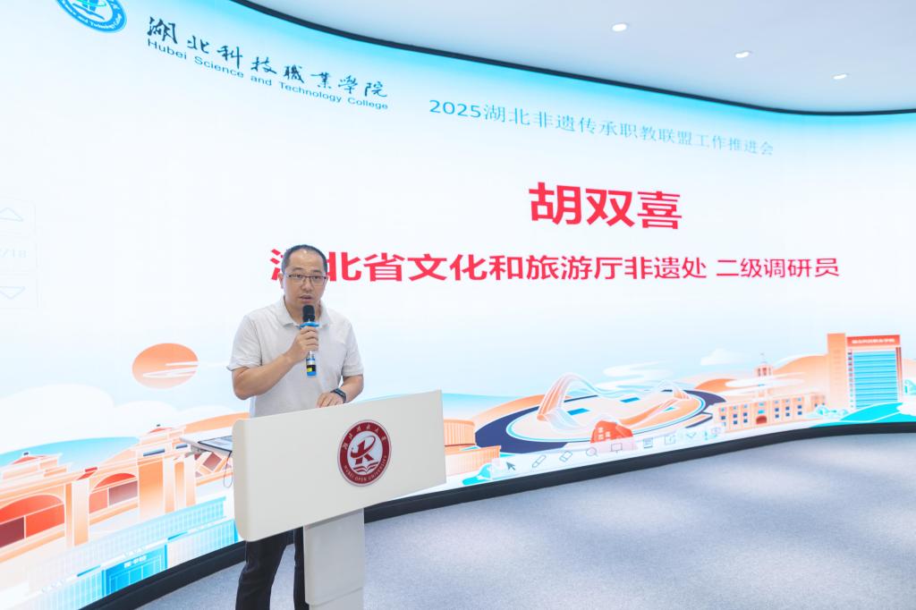 会议现场公布了2025年度“荆楚非遗文化职教传承研究中心”立项课题名单,涵盖小学、中职、高职等多项非遗技艺与教育结合的现代转化研究。