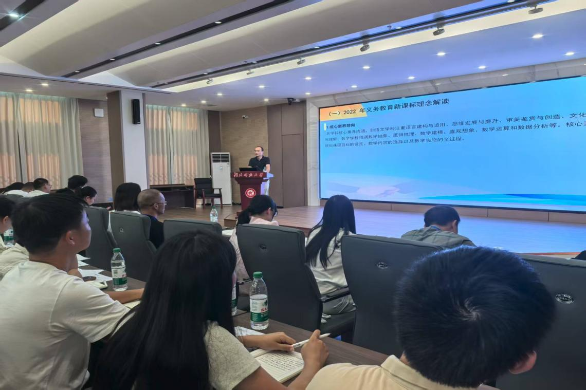 本次集中培训共三天,内容安排紧凑充实。18日上午,舒晓辉教授作《基于新课程标准“教—学—评一致性”的实践探索》专题报告,从教学目标、课堂实施到评价改进进行了系统阐述,并结合案例深入分析。他表示,“教—学—评一致性”是落实核心素养的重要途径,报告兼具理论高度与实践指导,为教师们提供了有益参考。