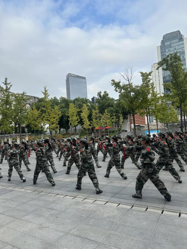 铁血匕首操:汗水里的青春锋芒。“握刀!刺!劈!撩!”伴随着教官铿锵有力的指令,艺创学子身着迷彩服,手持模拟匕首,动作整齐划一、干脆利落。阳光下,他们的眼神坚定如炬,手臂摆动间尽显力量,每一个 “刺向目标” 的动作都饱含决心,每一次 “格挡防御” 的姿态都透着无畏。