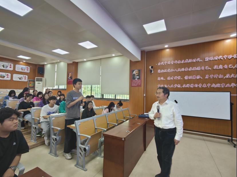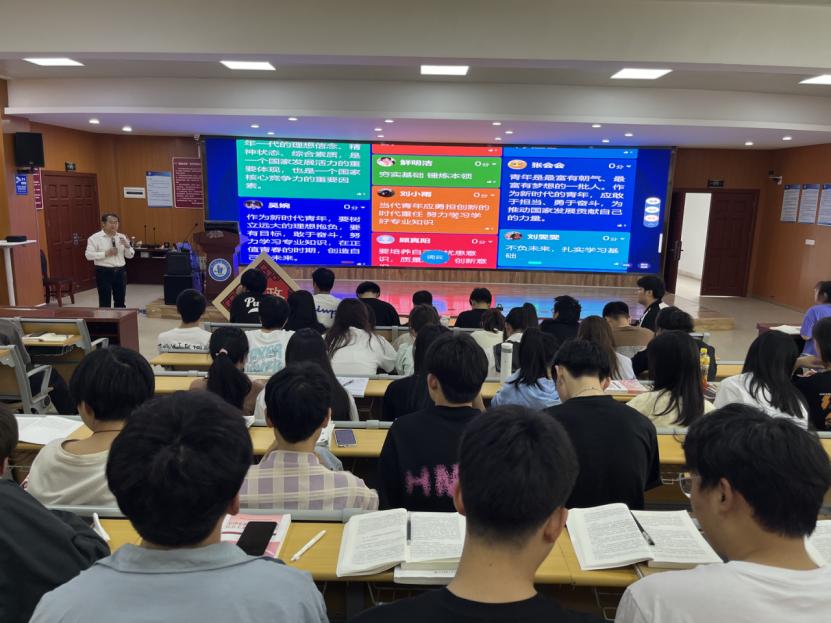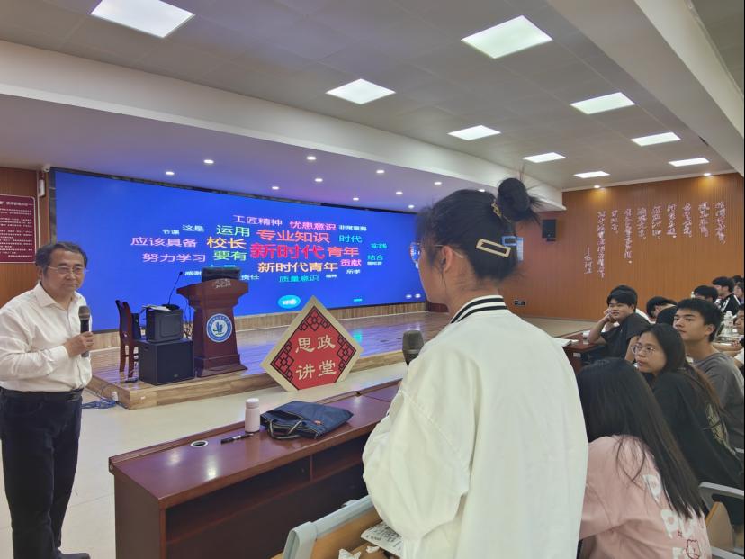 接着,讲课结合新闻时事,分享了党的二十大精神。“你准备好当工人了吗?”“你们如何看待工人?”钟毓宁以我国先进工匠的具体事迹为例,融入了党的二十大报告中对于教育、科技、人才的极端重视,从人才强国的战略高度出发,引导同学们深刻理解我国在建设社会主义现代化强国过程中对于知识型、技能型、创新型高技能人才的需求和渴望。他以优秀硕士毕业生当工人,并成长为行业首席专家的事例,消除了只有高职学历的学生才会当工人的认识误区,树立了技术工人通过技能报国光荣的理念。