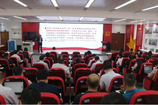 本网讯(通讯员 骆乐/文 李贺刚/图)为深入学习贯彻习近平新时代中国特色社会主义思想,促进中层领导干部提高解决实际问题的能力,按照学校学习贯彻习近平新时代中国特色社会主义思想主题教育安排,5月29日,学校召开学习贯彻习近平新时代中国特色社会主义思想主题教育中层领导干部专题培训,特邀请省委党校政法教研部副主任徐伟教授作专题辅导。党委常委张化斌主持,全体中层领导干部参加。