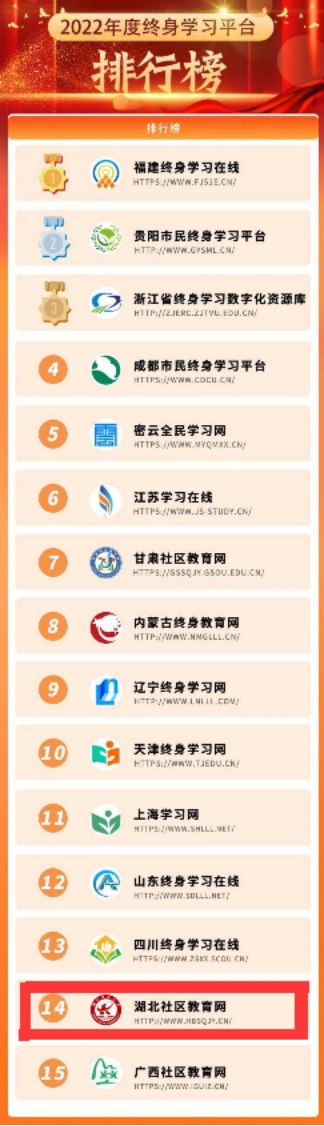 创新举措念好“整改经”。为进一步落实湖北省政府办公厅《关于进一步加强老年教育工作的意见》)(鄂政办发〔2018〕45号)关于“以湖北社区教育网为依托,形成涵盖省、市、县三级老年教育在线学习平台和‘空中课堂’,营造‘处处可学、时时能学、人人皆学’的老年教育氛围”要求,学院建设好维护好优化好这一社区教育数字化平台,汇集海量资源,免费向所有学习者开放,截止目前点击量已过3000万,以全国第14名的综合优势荣登“2022年度全国终身学习平台排行榜”,获得业界和社会的高度认可。